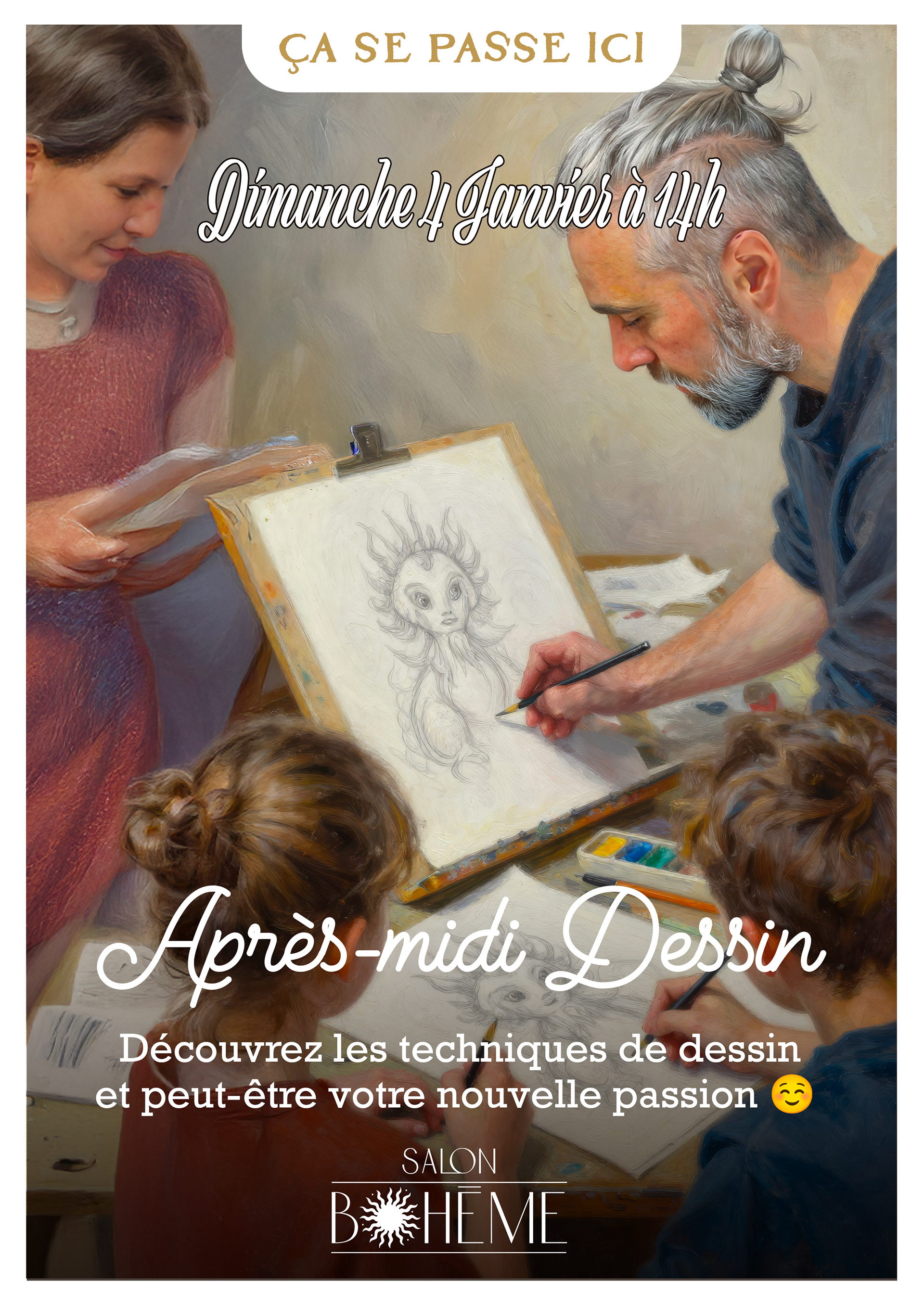 Janvier commence avec une première initiation sur les techniques de dessin. Rendez-vous le dimanche 4 janvier à partir de 14h. Participation libre.