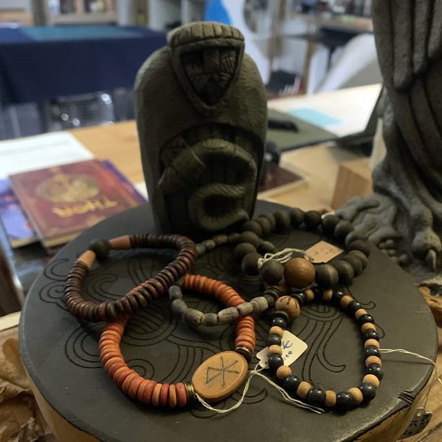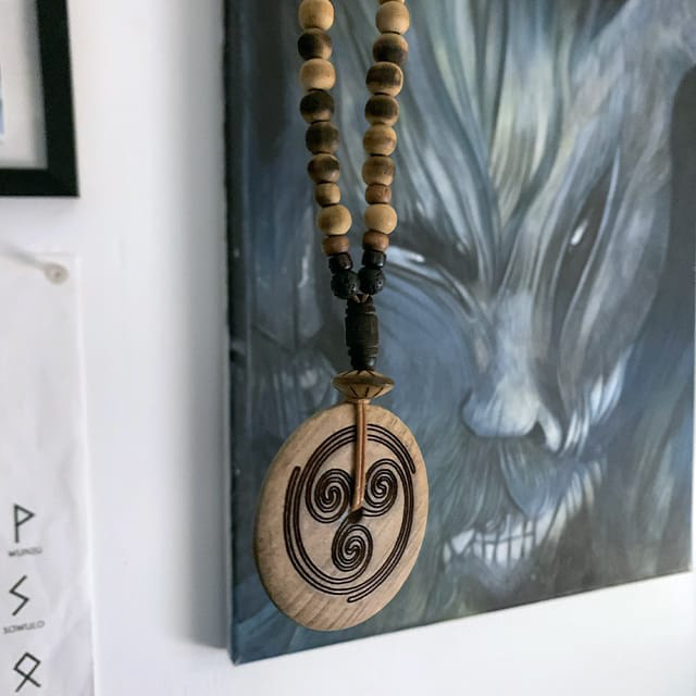 Pendentifs en bois ornés de runes et oghams