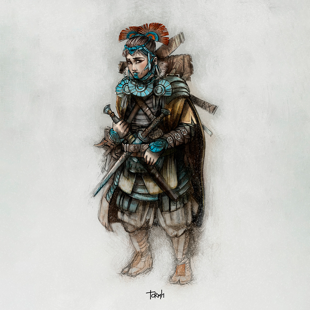 Recherche graphique de tenue pour une peuplade bordant les forêt de lichen au sud-est du nouveau continent (création issue de mon projet 'Artefact').